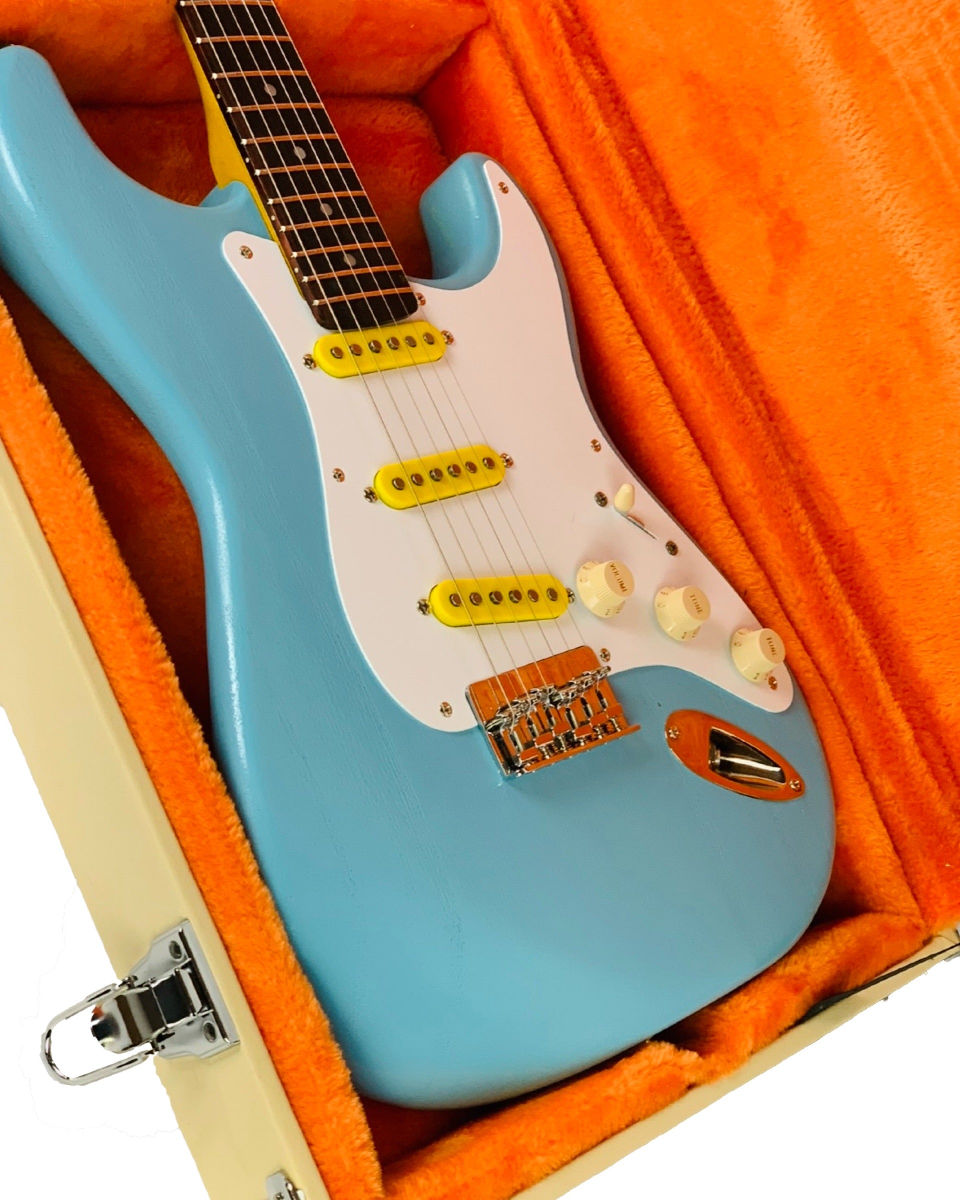 Our Stratatone has been stripped of unnecessary features so you can quickly do what has to be done, sans encumbrance. Don't let the shockingly light weight and cute colors fool you into thinking this is a toy--she's a beast under the hood. Comes with hardshell case.